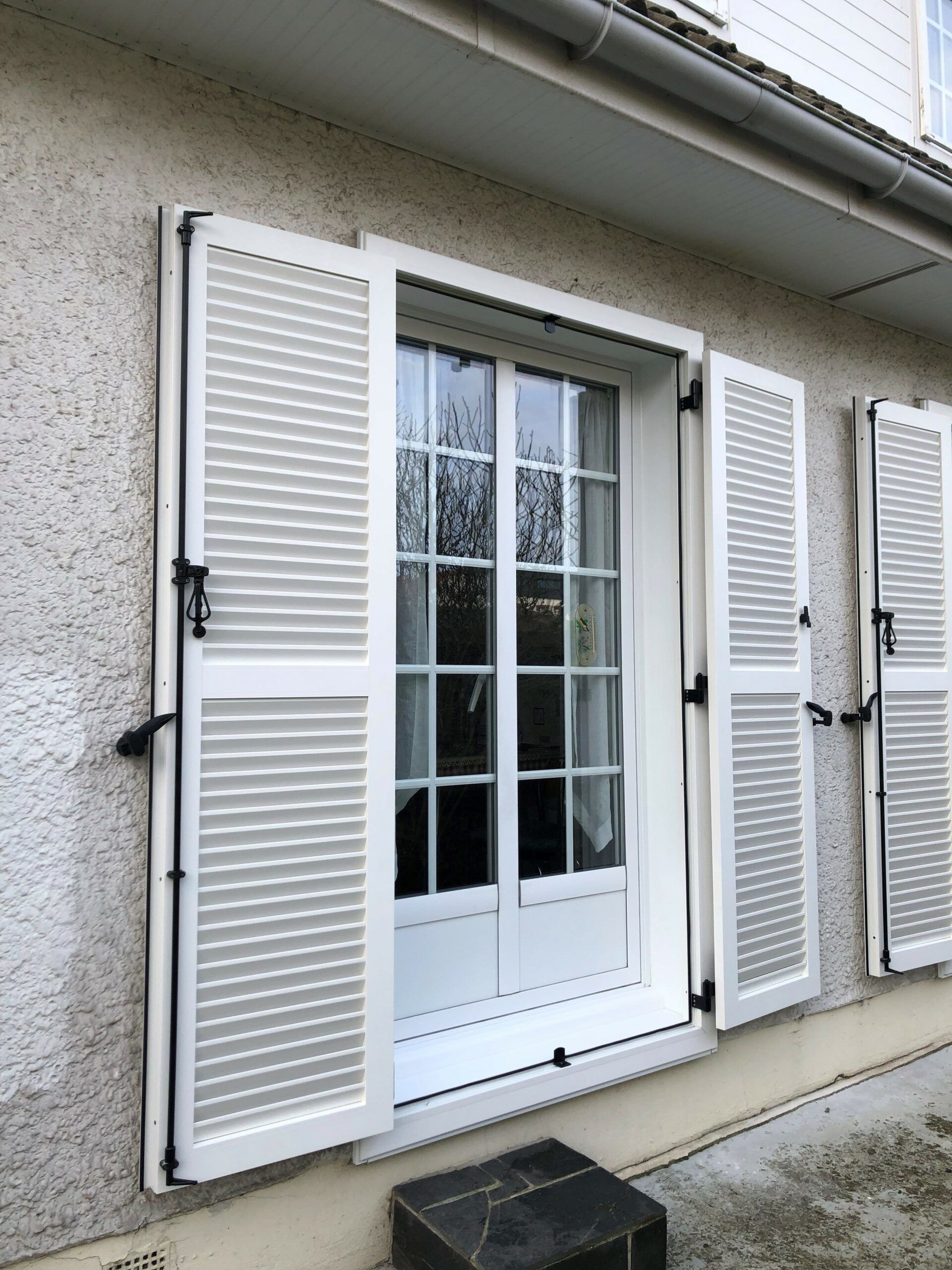 Réalisation de volets battant aluminium avec précadre en RAL Blanc 9016