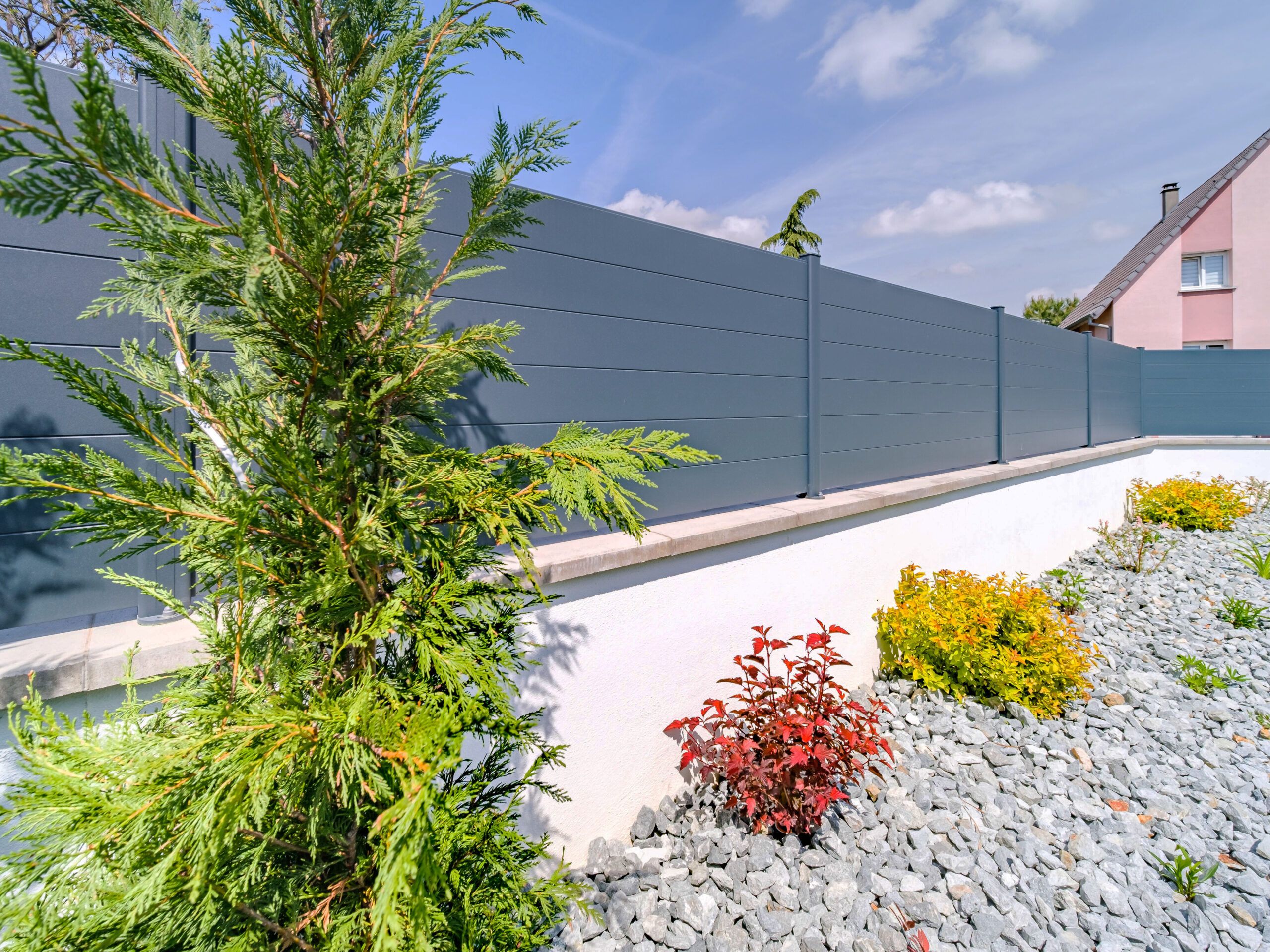 Avec plus de 50 styles de design et 300 coloris au choix, vous trouverez assurément la clôture sur-mesure qui vous ressemble. Quel que soit votre terrain, nos clôtures s’adaptent à toutes les configurations : sur muret, toute hauteur, en redan.